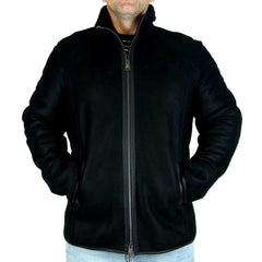 Fekete színű, antikolt hatású nappásított kézműves férfi irha kabát