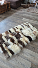 Szűcsgéppel varrott, báránybőrből készült szőnyeg