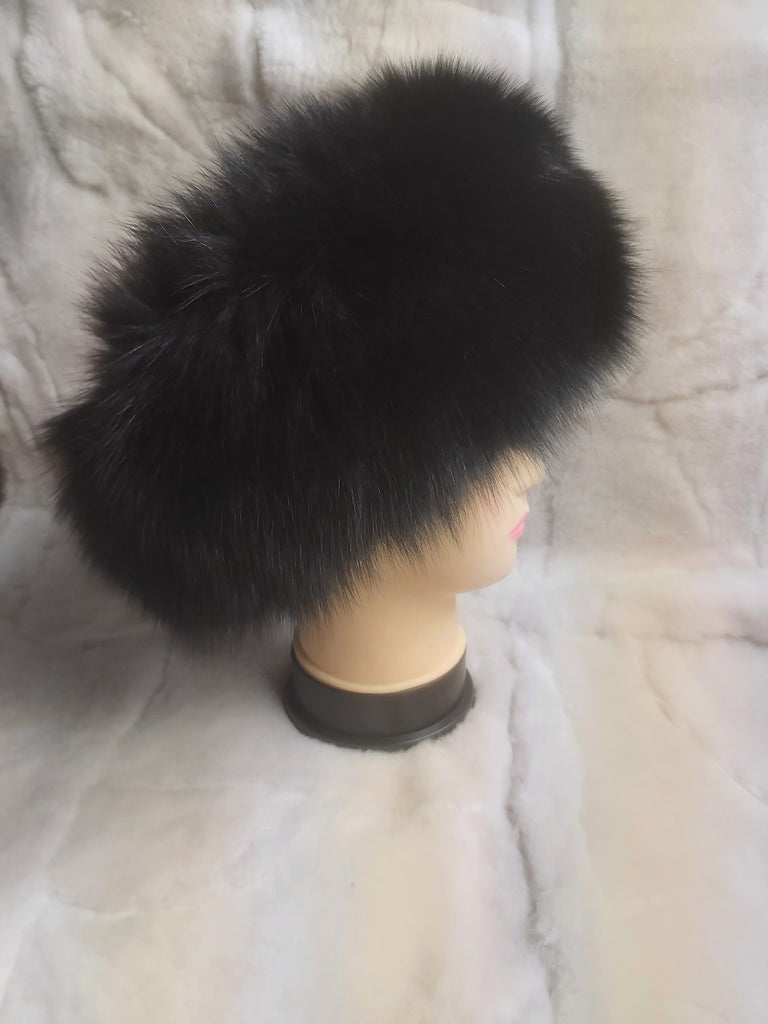 Rókaszőrből készült, hosszú szőrű, fekete színű , női fejpánt.