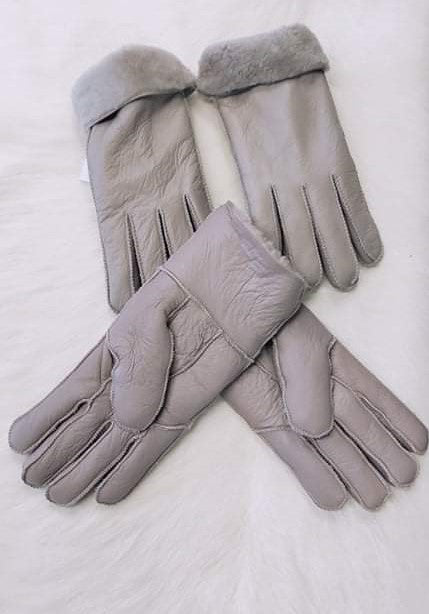 Báránybőrből készült, világos színű nappásított női irha kesztyű, natúr színű bárány díszítőprémmel!