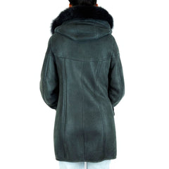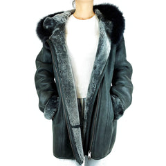 Rövid-középhosszú, karcsúsított fazon. Elől ferde czipzáras záródású, kapucnis női irha kabát.