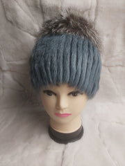 Világoskék színű, kézműves, női szőrme sapka